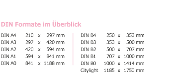 Alle Drucke gibt es in den Ausführungen „indoor“, oder „outdoor“. „Indoor”-Plakatpapiere eignen sich vorzugsweise für Anwendungen, bei denen die Plakate nicht nass werden. Gleichwohl sind auch diese Poster hoch lichtecht und vertragen ein paar Spritzer Wasser ohne zu verlaufen. „Outdoor”-Plakate werden auf nassfestem, auch kleisterbarem Affichenpapier gedruckt und sind auch durchnässt noch reissfest.