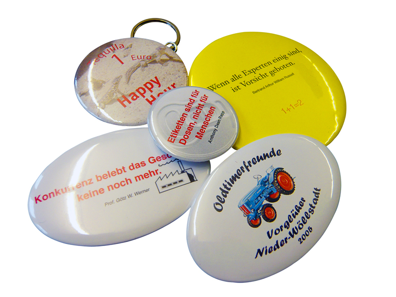 Buttons mit 50 mm Durchmesser, rund.